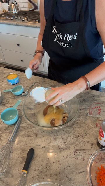 7. Slowly add the dry ingredients to the egg/oil mixture.