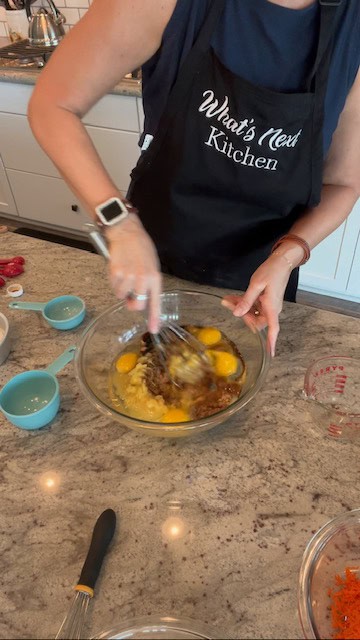 6. Add the eggs, applesauce, crushed pineapple and vanilla. Mix until well combined.