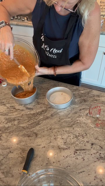 11. Pour into prepared pans. Bake at 350 degrees for 28-30 minutes or until a toothpick comes out mostly clean.