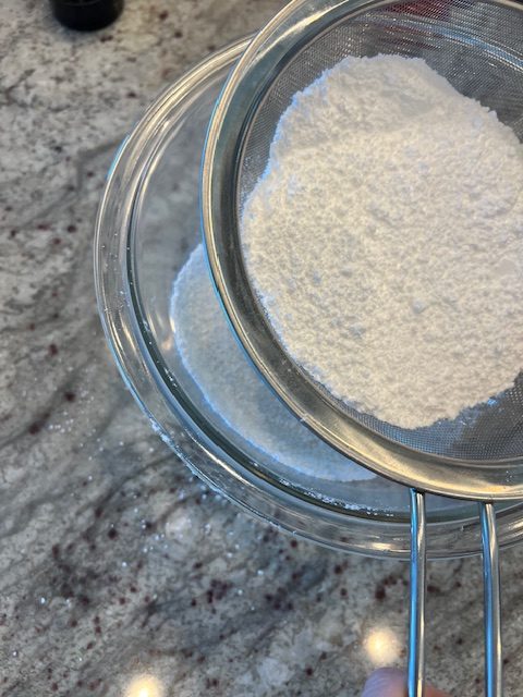 Sift the flour, sugar, baking soda, baking powder and salt together at least three times over a bowl. Set aside.